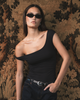 This single twisted-shoulder top is designed for a close fit in smooth modal jersey with ruching.