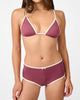 Cooper is an elongated triangle top with adjustable shoulder straps, contrast binding and a tie-back closure, a more comfortable alternative to traditional halter strings. Designed to enhance curves while flaunting subtle side exposure, it's an alluring spin on a classic bikini.
