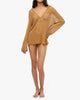 This crochet hooded caftan has an oversized fit with a plunging v-neckline and long sleeves.