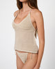 Made from our crochet-like fabric, this tankini pairs a halterneck with an open back, both featuring adjustable tie-straps. The triangle cups are backed with lining for coverage.
