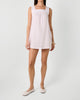 This pullover babydoll mini dress is offered in cotton poplin fabric and is designed with a high square neckline defined by an A-line shape.