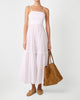 This cotton poplin dress has a fitted bodice featuring princess seams, a smocked back panel with an invisible zip closure. The spaghetti straps are decorated on the back with tiny bows and a ruffled tier details the flowy skirt, which sweeps wide and falls to a midi length.