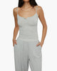 The Henley Cami Top is styled with the Wide Leg Pant.