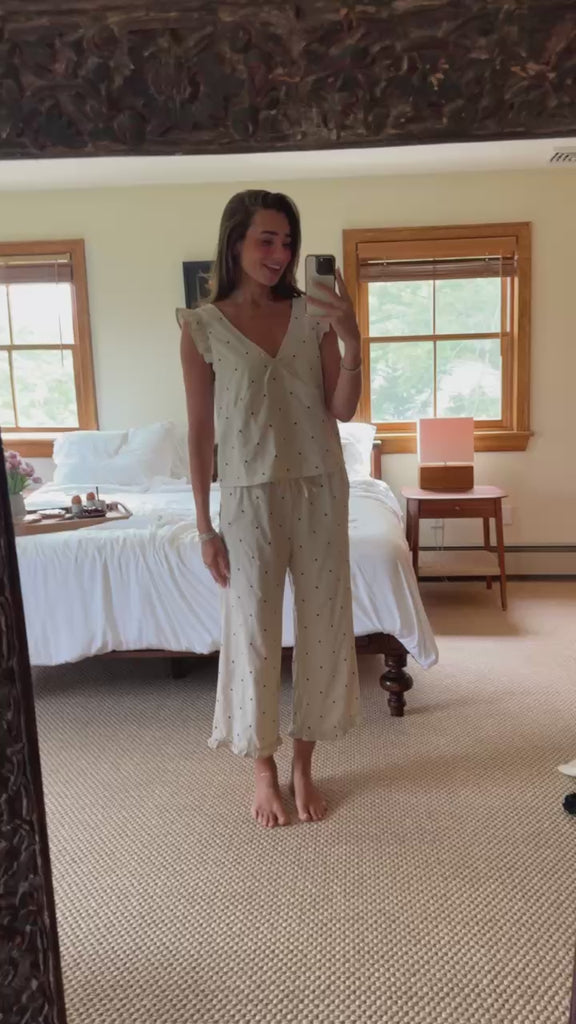 The Ruffle Sleeve Boxy Top is styled with the Ruffle Pull-On Pants.