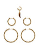 Made with hammered 16K gold plating, this earring set is designed to follow the curve of the lobe, with two bamboo-inspired hoops as well as a matching ear cuff featuring a tiger’s eye horn.