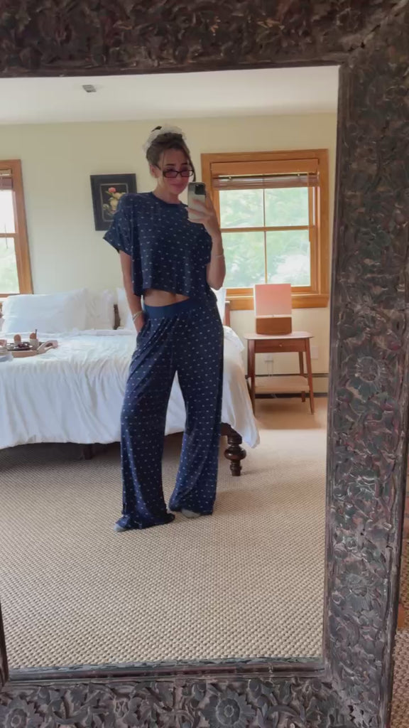 The Cropped Sleep Tee is styled with the Wide Leg Pant.