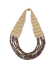 The Freshwater Pearl Crochet Necklace is styled with the Triangle Top, Delilah Bottom, and the Earth Tone Pearl Bracelet With Wood Closure.