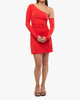 Made in a double-knit with four-way stretch, this A-line mini dress has a ruched waist to accentuate the slim fit, an asymmetric one-shoulder neckline, and long, fitted sleeves.