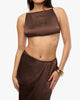 This cropped square neck top is made from stretch satin with adjustable straps and an open back.