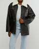 This long vegan leather sherpa collar jacket comes in a slouchy, drop-shoulder silhouette with a boxy fit and removable collar.