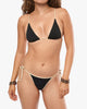 A take on a classic string bikini, this micro triangle top offers minimal coverage in lined swim fabric with bungee straps and ties in the back.